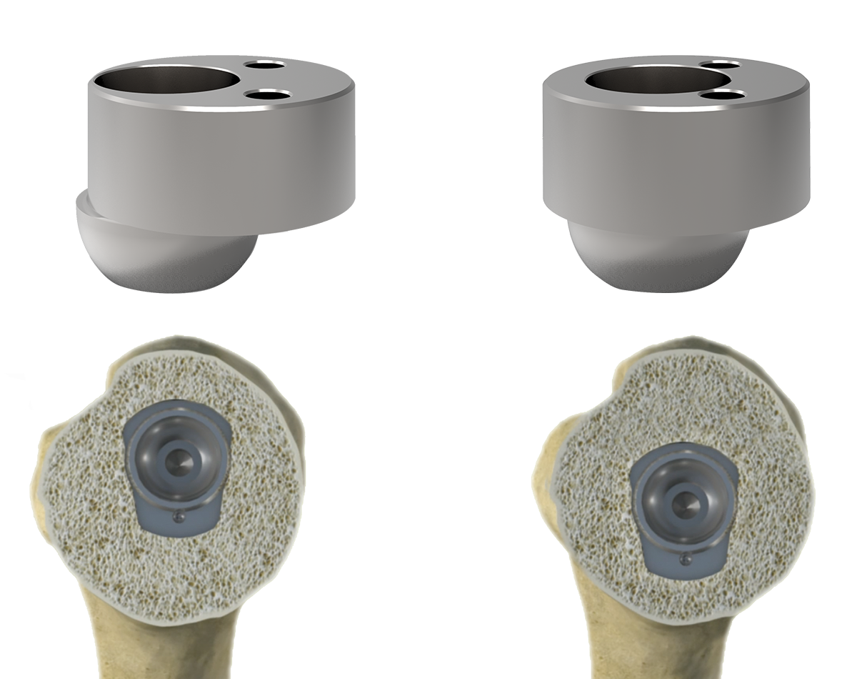 Zwei Exzentrizitäten (Kopf und Replikatorplatte) erlauben zudem die individuelle Einstellung des medialen und posterioren Offsets und somit eine anatomische Ausrichtung des Humeruskopfes.2-4