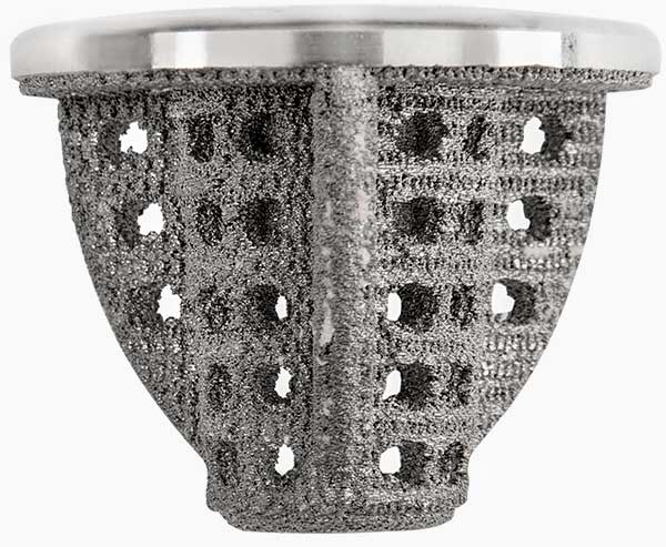 Die Ansichten von unten (links) und oben (rechts) des schaftlosen Cage zeigen die Revisionsschlitze.