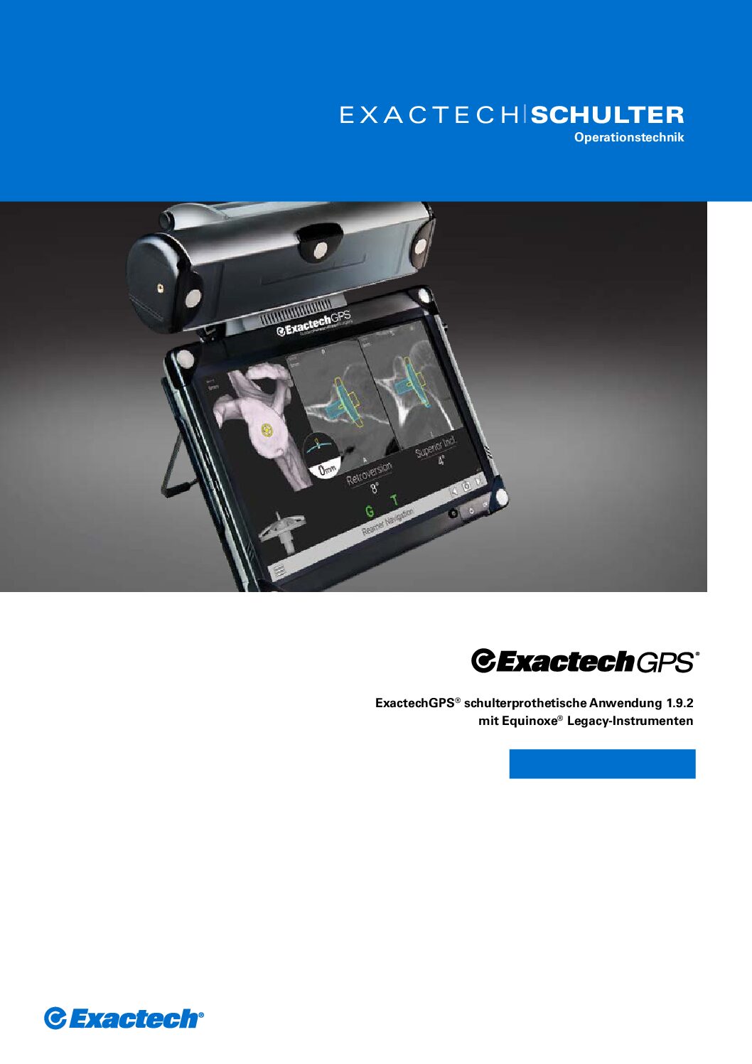 Intraoperativ bietet ExactechGPS® Einblick in das Glenoid in Echtzeit und ermöglicht eine fogerichtige, genaue Positionierung des Glenoids.1